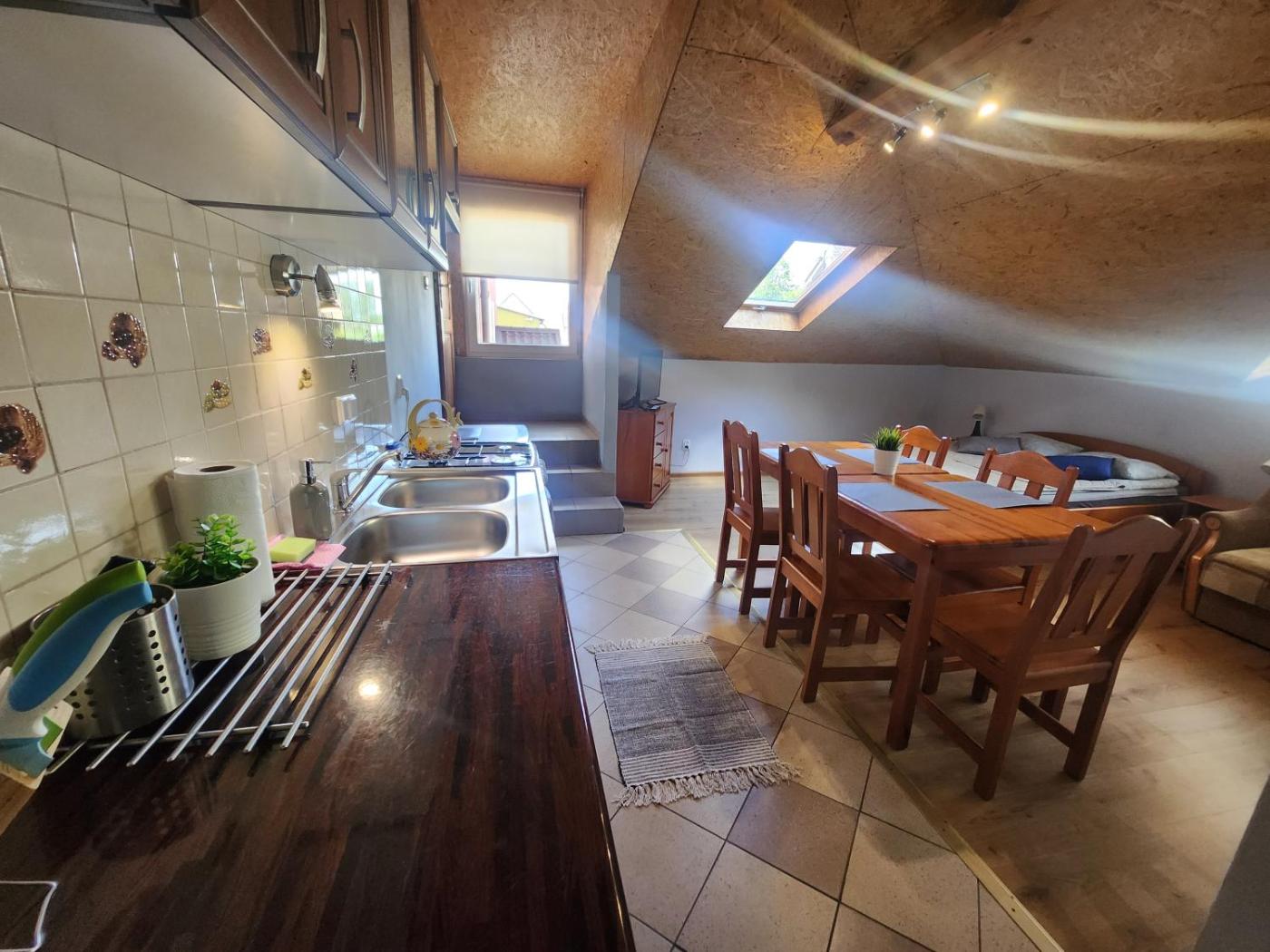 Apartament dwupoziomowy. Boasting a private entrance, this apartment comes with 1 living room, 1 separate bedroom and 1 bathroom with a shower and a hairdryer. In the well-fitted kitchenette, guests will find a stovetop, a refrigerator, kitchenware and an electric kettle. This apartment features a flat-screen TV. The unit has 3 beds. Apartament - 5 osobowy. Powierzchnia pokoju ok.: 27 mkw. ;