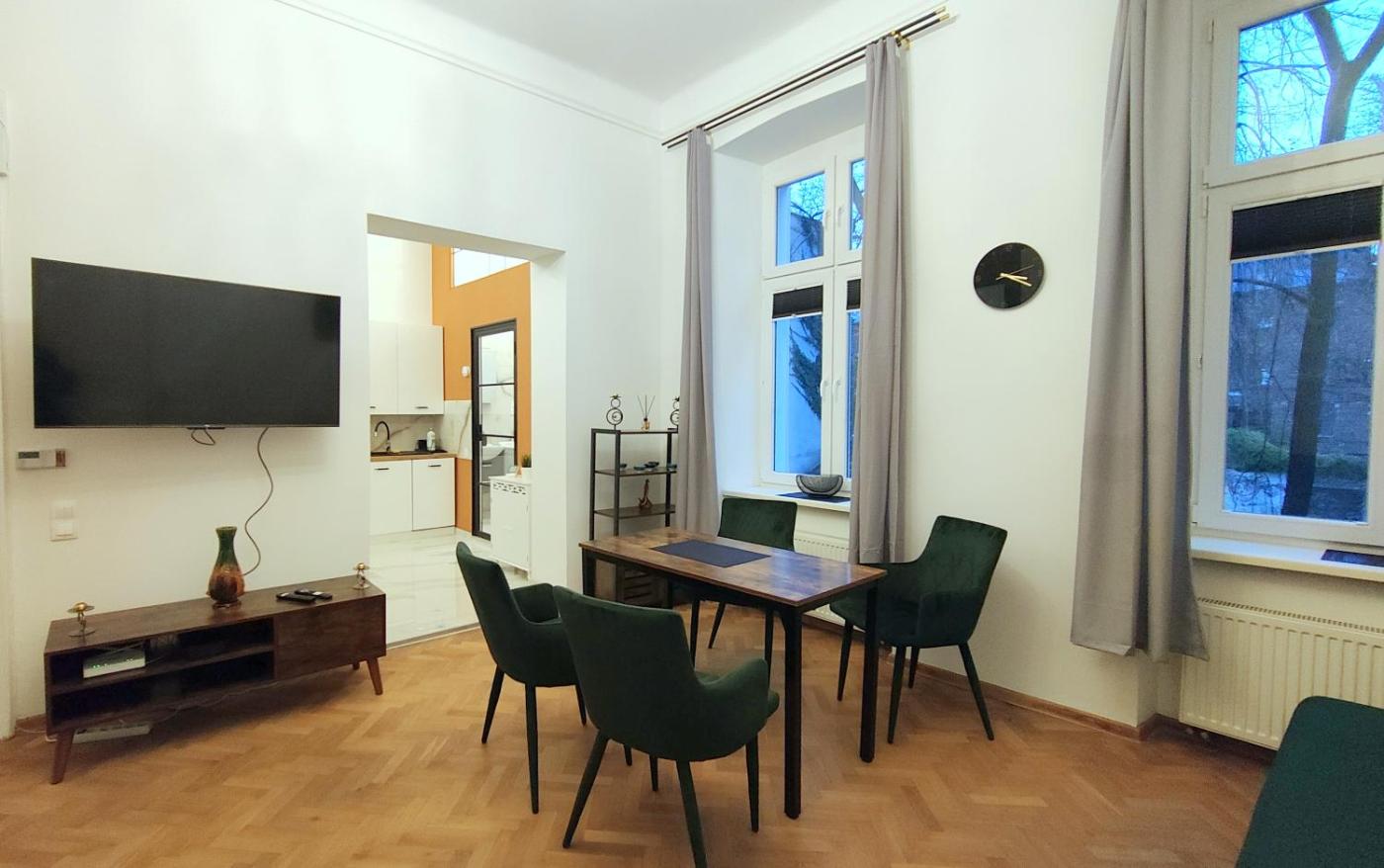 Apartament z 1 sypialnią. Featuring a private entrance, this apartment consists of 1 living room, 1 separate bedroom and 1 bathroom with a shower and a hairdryer. The well-equipped kitchen features a stovetop, a refrigerator, a dishwasher and kitchenware. Boasting a balcony with ancourtyard view, this apartment also provides a washing machine and a flat-screen TV. The unit offers 3 beds. Apartament - 6 osobowy. Powierzchnia pokoju ok.: 55 mkw.