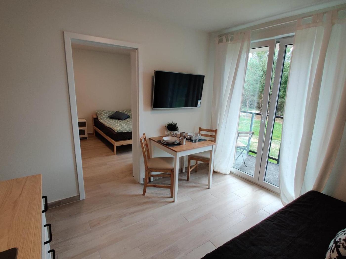 Apartament z 1 sypialnią. This apartment is comprised of 1 living room, 1 separate bedroom and 1 bathroom with a walk-in shower and a hairdryer. In the well-fitted kitchenette, guests will find a stovetop, a refrigerator, kitchenware and an electric kettle. Featuring a balcony with garden views, this apartment also offers a wardrobe and a flat-screen TV. The unit offers 3 beds. Apartament - 4 osobowy. Powierzchnia pokoju ok.: 28 mkw. ;