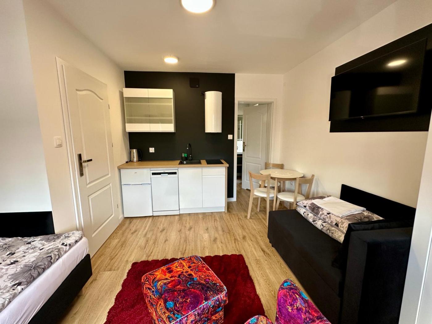 Apartament z 1 sypialnią. The apartment features 1 bedroom and 1 bathroom with a shower and free toiletries. Guests will find a stovetop, a refrigerator, a dishwasher and kitchenware in the kitchenette. The apartment also has a barbecue. Featuring an outdoor dining area, this apartment also offers a wardrobe, an electric kettle and a flat-screen TV. The unit offers 1 bed. Apartament - 3 osobowy. Powierzchnia pokoju ok.: 16 mkw.