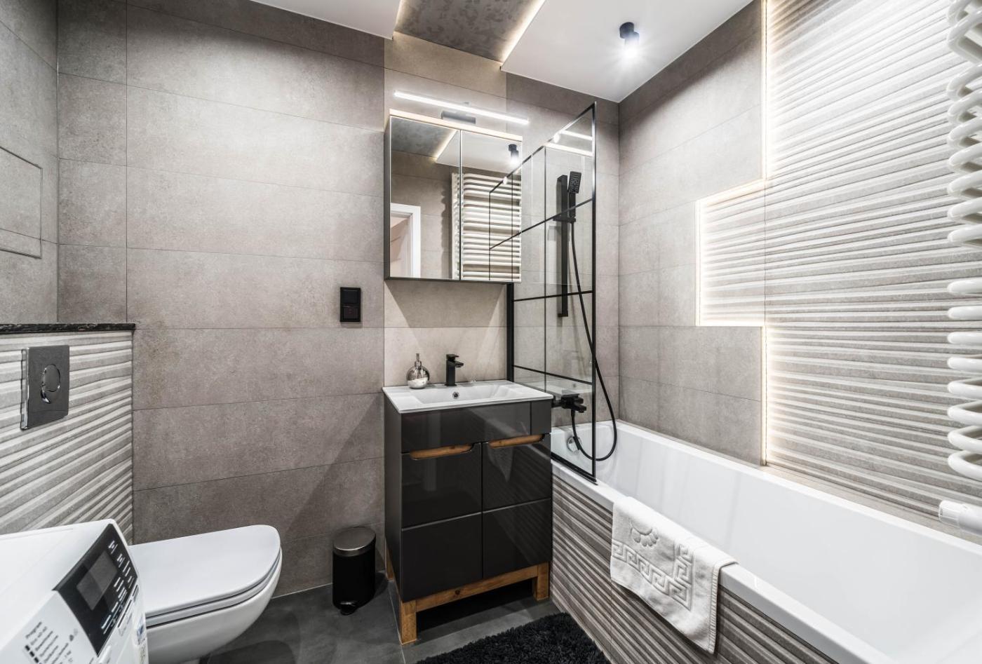 Apartament z 2 sypialniami. This apartment comprises 1 living room, 2 separate bedrooms and 1 bathroom with a bath and a hairdryer. Meals can be prepared in the kitchen, which comes with a stovetop, a refrigerator, a dishwasher and kitchenware. This apartment features a washing machine, an electric kettle, a TV with satellite channels and a balcony. The unit offers 3 beds. Apartament - 7 osobowy. Powierzchnia pokoju ok.: 59 mkw.